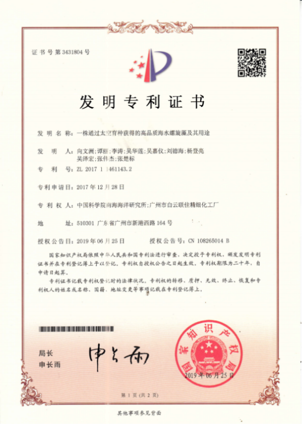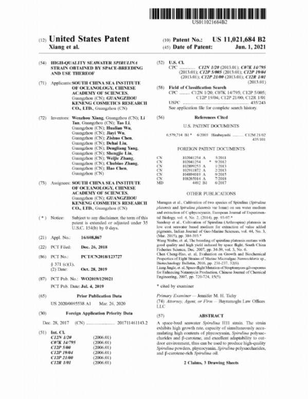 研發(fā)H11太空藻,取得中美發(fā)明雙專利