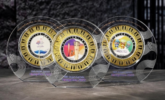 三枚銀盤,每枚86克足銀,以傳承千年的皇家獨(dú)享非遺花絲絕技,經(jīng)過掐、填、攢、焊、編、織、堆、壘等技法,完美打造而成。內(nèi)鑲嵌86克999純銀材質(zhì),經(jīng)過鏡面、噴砂、彩印等先進(jìn)鑄幣工藝,創(chuàng)作而成的純銀銀盤。全套共計(jì)三枚,總重量高達(dá)258克。正面主圖為,杭州2022年第19屆亞運(yùn)會(huì)會(huì)徽;亞運(yùn)會(huì)吉祥物“琮琮”、“蓮蓮”、“宸宸”以及亞運(yùn)會(huì)火炬“薪火”。背面均為杭州奧體中心體育場,“大蓮花”造型。將中國特色,浙江風(fēng)采,杭州韻味完美呈現(xiàn),更是將亞運(yùn)薪火相傳的精神,與體育健兒拼搏進(jìn)取的精神,體現(xiàn)的淋漓盡致。