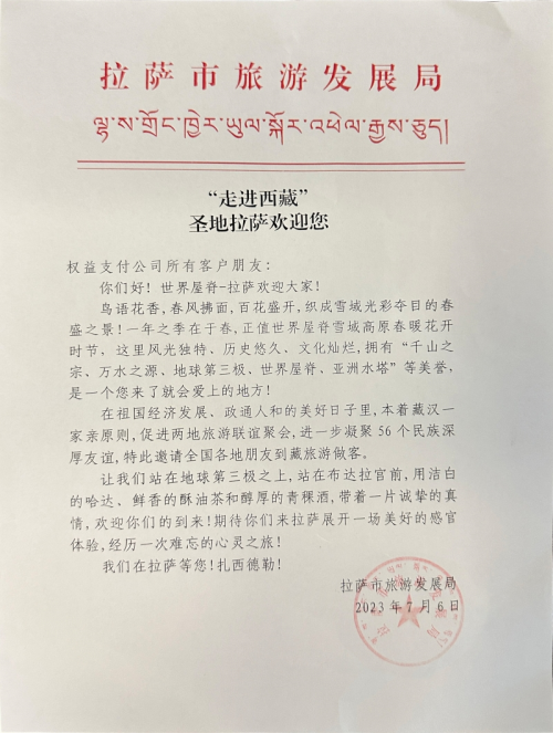 早在2023年7月6日,李藝凡老師及其權(quán)益支付團(tuán)隊(duì)就收到了拉薩市旅游發(fā)展局的歡迎邀請(qǐng)。于是,在2023年8月下旬的時(shí)光中,李藝凡老師帶領(lǐng)權(quán)益支付團(tuán)隊(duì),踏上了前往西藏拉薩的公益行游學(xué)之旅。整個(gè)行程,持續(xù)七天六夜。李藝凡老師與其團(tuán)隊(duì),通過對(duì)當(dāng)?shù)鼐包c(diǎn)進(jìn)行參觀、對(duì)當(dāng)?shù)夭孛襁M(jìn)行家訪以及對(duì)當(dāng)?shù)赜行枰娜诉M(jìn)行扶貧濟(jì)困、捐贈(zèng)等方式,實(shí)踐和推動(dòng)了本次公益行游學(xué)之旅的進(jìn)程和落地。