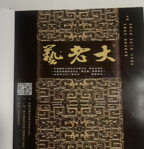 東陽(yáng)市南馬藝?yán)洗蠓鹿殴に噺S成立于2007年,2010年注冊(cè)商標(biāo),總部設(shè)在東陽(yáng)市南馬鎮(zhèn)溪東村工業(yè)區(qū),位于中國(guó)木雕之鄉(xiāng)——浙江東陽(yáng),前身為嘉成仿古工藝廠,主要生產(chǎn)仿古門窗、仿古木雕掛件、仿古屏風(fēng)、仿古插屏、仿古落地罩、仿古博古架等,產(chǎn)品適用于賓館,酒樓,廟宇,茶樓,會(huì)議室等多個(gè)場(chǎng)景。