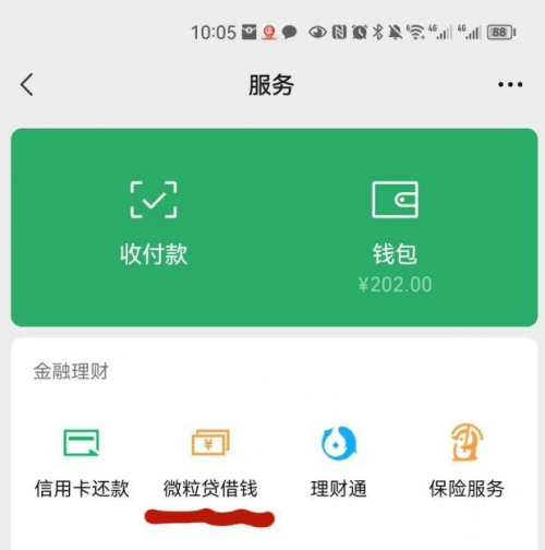 除了以上幾點,微粒貸還有一大特點值得關注,那就是微粒貸暫無APP,不需要下載APP使用,在微信的【服務】界面可以看到“微粒貸借錢”字樣圖標,這就是微粒貸的入口。不過當前,微粒貸采取官方邀請制度,非受邀用戶是無法看到圖標也無法使用微粒貸的,受邀的用戶如有應急周轉需求,可以嘗試開通一下。