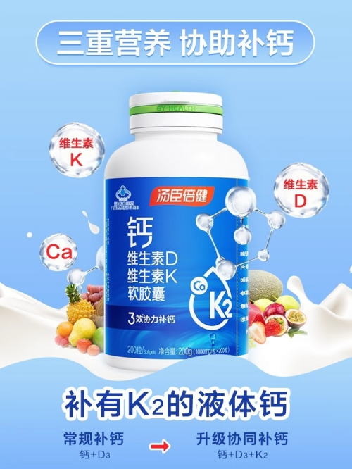 其中,維生素D3又稱膽鈣化醇,能夠促進腸道對鈣的吸收,有利于鈣在骨中沉積,從而增加骨質的強度;維生素K2在維持正常骨骼代謝起著重要作用,它能夠優(yōu)化鈣平衡,刺激礦化,也就是使鈣沉積到骨組織當中,從而有助減少骨質流失,改善骨結構,增加骨重、骨密度。在維生素D3、維生素K2的協(xié)助下,湯臣倍健鈣DK中的鈣成分能夠更好地被人體吸收利用。
