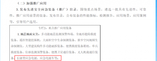 近日,工業(yè)和信息化部、國家發(fā)展改革委、科技部、財政部、應(yīng)急管理部等五部門聯(lián)合發(fā)布了《安全應(yīng)急裝備重點領(lǐng)域發(fā)展行動計劃(2023-2025年)》的通知(工信部聯(lián)安全 [2023] 166號,以下簡稱《行動計劃》),明確了通過強化核心技術(shù)攻關(guān)和加強先進適用安全應(yīng)急裝備供給,提高災(zāi)害事故防控和應(yīng)急救援處置能力的發(fā)展規(guī)劃。其中,戶外應(yīng)急電源作為重點安全應(yīng)急裝備,被提出和列入應(yīng)急物資儲備體系中。