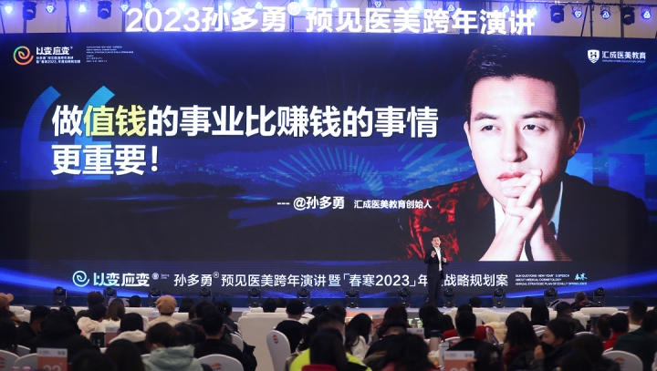 作為匯成醫(yī)美教育的創(chuàng)始人,孫多勇每年都會(huì)將自己的認(rèn)知升級(jí)濃縮成商業(yè)智慧,然后再轉(zhuǎn)化為醫(yī)美產(chǎn)業(yè)趨勢(shì)預(yù)測(cè)及良性增長(zhǎng)的方法論,以《孫多勇?跨年演講》及年度戰(zhàn)略規(guī)劃案的形式傳遞給全國(guó)醫(yī)美同仁。