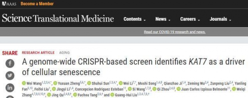 在一項(xiàng)新研究中,中科院與北京聯(lián)合研究所的科學(xué)家們通過全基因組基因編輯篩選平臺,在超過2萬個(gè)基因組中,成功確定了一個(gè)與衰老相關(guān)的關(guān)鍵基因,即組蛋白運(yùn)輸酶的編碼基因KAT7。