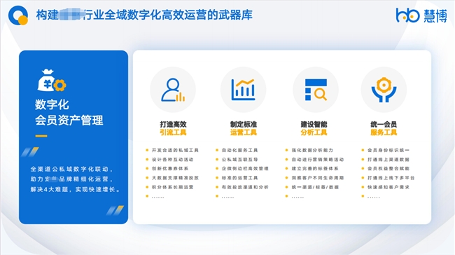 慧博科技,作為國內領 先的全域消費者數(shù)字化運營服務商,不僅致力于技術的創(chuàng)新和應用,更在幫助企業(yè)實現(xiàn)數(shù)字化轉型的道路上,扮演著引領者和實踐者的雙重角色。