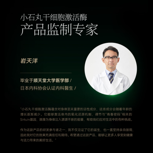 導(dǎo)語: 東京訊——近日,日本抗衰領(lǐng)域權(quán)威學(xué)者巖天洋教授,宣布出任“小石丸”品牌技術(shù)總監(jiān)制,引發(fā)業(yè)界高度關(guān)注。在接受專訪時(shí),他不僅重申了對(duì)NMN市場亂象的批評(píng),更首次從科學(xué)角度深入闡述了他監(jiān)制 “小石丸NMN靈芝精華” 的核心邏輯:“單一的高純度NMN是基礎(chǔ),但抗衰老的未來在于科學(xué)的復(fù)方協(xié)同。我在小石丸的研究中,看到了一個(gè)將前沿生物科技與東方草本智慧嚴(yán)謹(jǐn)結(jié)合的科學(xué)路徑。”