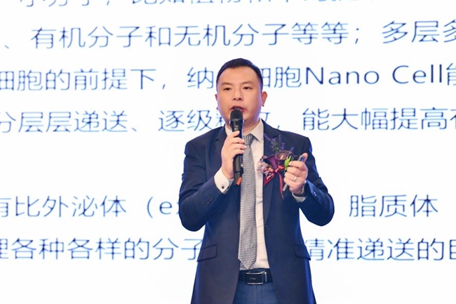 杭州美依生物科技有限公司副總經(jīng)理-牛炫,為大家現(xiàn)場(chǎng)講解了產(chǎn)品的核心技術(shù)——納米透皮吸收技術(shù)(MLNTD?),該技術(shù)以納米細(xì)胞(MLNTD?-NC?,又稱Nano Cell)為核心微觀載體,通過(guò)局部外用涂抹實(shí)現(xiàn)精準(zhǔn)、靶向、遞送,產(chǎn)品有效成分可以直接進(jìn)入細(xì)胞層,發(fā)揮健康調(diào)節(jié)作用。其非侵入式的遞送方式避免了口服產(chǎn)品對(duì)消化系統(tǒng)及肝臟的負(fù)擔(dān),同時(shí)顯著提升活性成分的生物利用度,實(shí)現(xiàn)透皮吸收的雙重優(yōu)化。