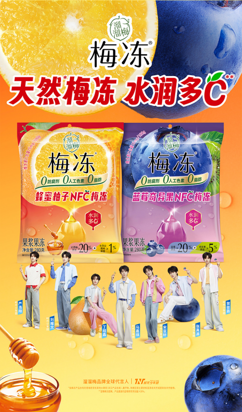 作為溜溜梅梅凍秋冬新品的“雙主角”,蜂蜜柚子NFC梅凍與藍莓奇異果NFC梅凍均以“天然梅凍,水潤多C”為核心定位,從原料、工藝到功效,全方位契合秋冬季節(jié)的滋養(yǎng)需求。溜溜梅蜂蜜柚子NFC梅凍采用NFC鮮果生榨工藝,鎖鮮保留天然風(fēng)味與活性營養(yǎng)——產(chǎn)品中紅西柚原漿添加量≥20%,不僅富含天然維生素C,更能為身體補充水分,助力增強防御力。同時,產(chǎn)品特別添加長白山椴樹雪蜜,入口溫潤清甜,清爽不膩的獨特風(fēng)味讓其成為秋冬潤燥的“心頭好”。