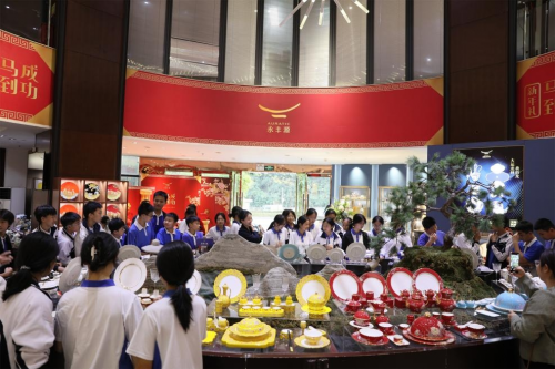 作為本次活動(dòng)的重頭戲,線下“非遺手繪專場(chǎng)”備受矚目。國(guó)瓷永豐源攜手龍華外國(guó)語(yǔ)小學(xué)、海天學(xué)校、木棉灣學(xué)校等,開(kāi)展了多場(chǎng)高規(guī)格的學(xué)生研學(xué)活動(dòng)。在非遺大師及手繪老師的親臨指導(dǎo)下,近千余名學(xué)子化身小小工匠,以瓷盤為紙,勾勒駿馬紋樣。這不僅是一次技藝的體驗(yàn),更是一場(chǎng)文化的洗禮,讓非遺傳承從“指尖”流淌進(jìn)“心間”,真正實(shí)現(xiàn)了非遺文化的活態(tài)傳承。