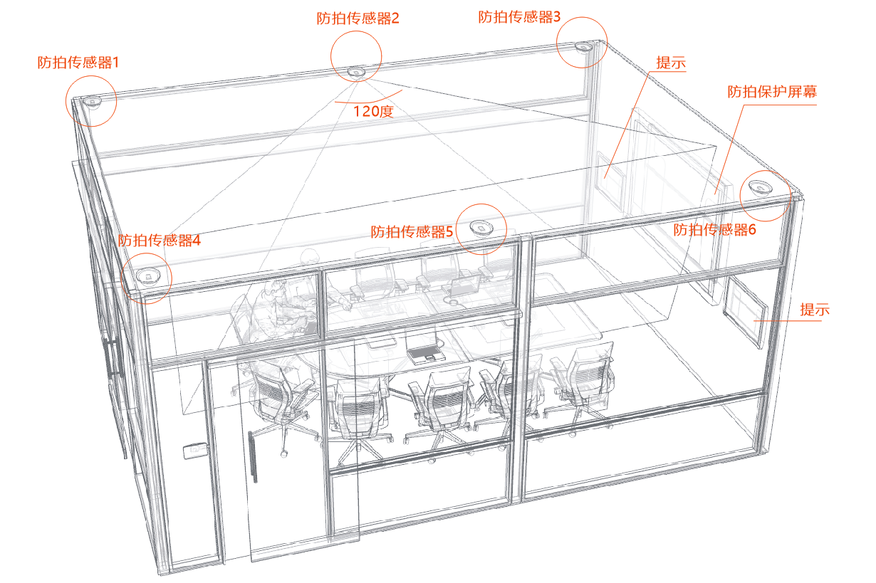系統(tǒng)搭載高精度傳感器 + 先進(jìn)圖像識(shí)別與動(dòng)作捕捉技術(shù),專門針對(duì)手機(jī)、平板等日常便攜拍攝設(shè)備研發(fā),可快速識(shí)別各類疑似拍攝操作,為會(huì)議室防拍照、空間防拍照筑牢第一道識(shí)別防線。傳感器擁有 120° 扇形探測范圍,3 米探測距離全面覆蓋會(huì)議室屏幕前方核心區(qū)域,近距離偷拍、遠(yuǎn)距離抓拍都能精準(zhǔn)捕捉,光線亮度>100lumen 時(shí)識(shí)別率超 90%,全方位無死角監(jiān)測,讓任何竊照行為都無處隱藏,從源頭發(fā)現(xiàn)涉密空間防拍的泄密隱患。