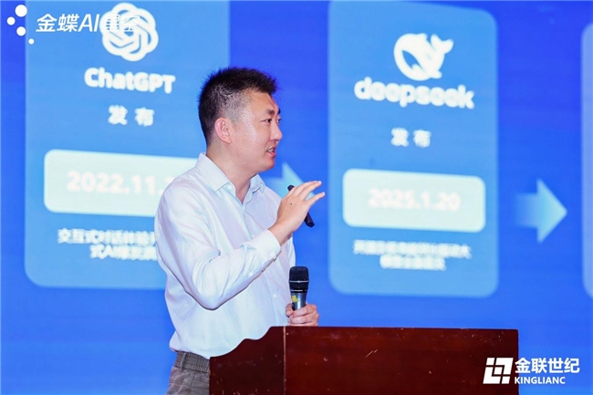 隨后,北京金聯(lián)世紀科技有限公司總經(jīng)理毛英善先生發(fā)表致辭,深刻闡述了AI范式的根本性變革。他指出,AI正從輔助人類的“顧問”進化為能夠直接理解業(yè)務(wù)、執(zhí)行任務(wù)的“數(shù)字員工”,推動生產(chǎn)力從“對話式交互”邁向“端到端自動化”的“零阻力”進化。毛總強調(diào),AI的賦能效果取決于“高質(zhì)量的數(shù)據(jù)土壤、深厚的業(yè)務(wù)本體、完善的Skill生態(tài)”三大基石。他提出,AI不是SaaS的終結(jié)者,而是其最強大的進化加速器,金蝶早已提出AI EBC(企業(yè)業(yè)務(wù)能力)理念,推動企業(yè)從記錄流程的“ERP”時代邁向智能驅(qū)動決策的“AI EBC”時代,實現(xiàn)從“記錄系統(tǒng)”到“智能系統(tǒng)”的質(zhì)變。