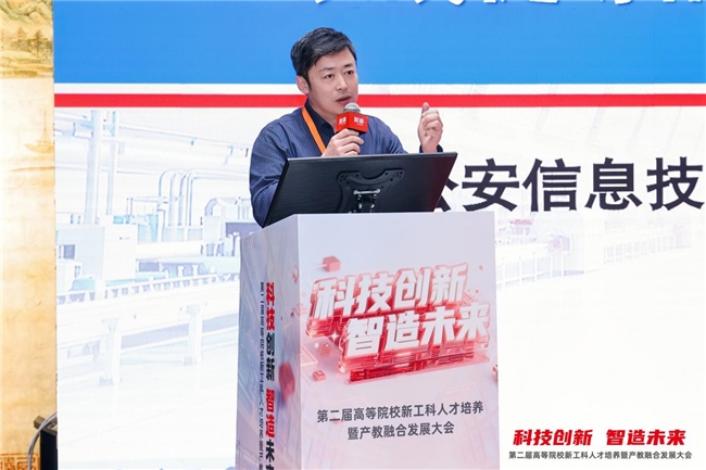 新道科技股份有限公司服務(wù)業(yè)務(wù)部總經(jīng)理任永程發(fā)表《AI賦能的新一代信息技術(shù)專業(yè)建設(shè)探索》主題報(bào)告。他指出,在“十五五”科技發(fā)展的戰(zhàn)略指引下,AI與公安工作發(fā)展愈發(fā)呈現(xiàn)融合趨勢(shì),人才培養(yǎng)需緊跟時(shí)代構(gòu)建遞進(jìn)式能力培養(yǎng)體系。新道科技通過打造公安AI通識(shí)課程體系,落地真實(shí)警務(wù)場(chǎng)景的多款實(shí)戰(zhàn)模型,創(chuàng)新雙軌教學(xué)模式,構(gòu)建了“五數(shù)一體”數(shù)據(jù)警務(wù)人才培養(yǎng)體系。為推動(dòng)成果落地,新道科技以多維舉措深化產(chǎn)教融合,為智慧警務(wù)人才培養(yǎng)提供了專業(yè)解決方案與實(shí)踐范式,助力數(shù)智化警務(wù)人才培養(yǎng)邁上新臺(tái)階。